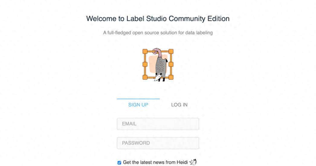 此命令告知 Docker 启动 Label Studio,使其可在http://localhost:8080上查看,将数据库和任务文件存储在本地硬盘上,并启用本地文件服务。Label Studio 启动后,您可以使用浏览器导航至http://localhost:8080,您将在其中看到 Label Studio 登录屏幕。