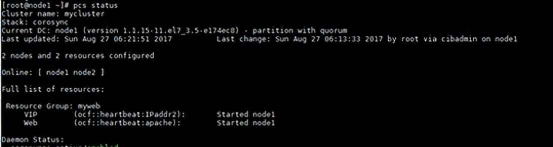 $ sudo pcs cluster enable –all # 查看集群状态 $ sudo pcs status |