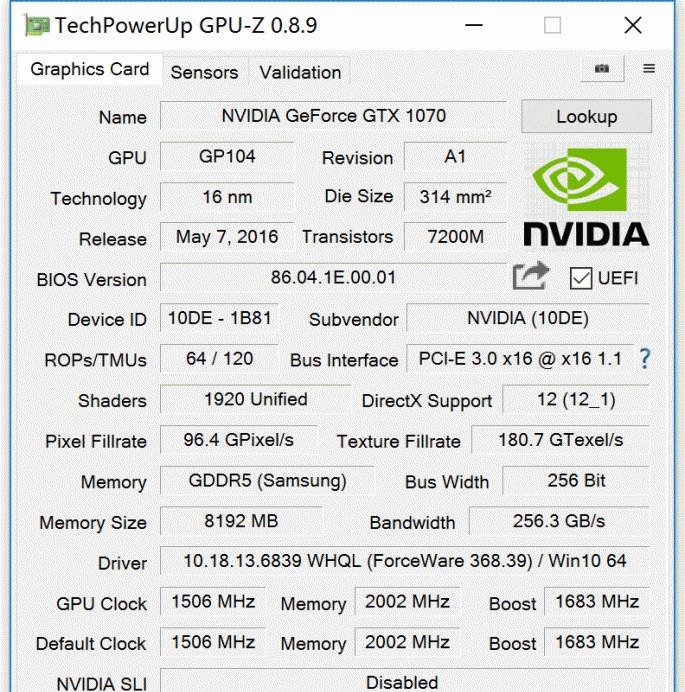 当然这一栏中的规格就是GPU的具体名称了(图1),如果同名GPU有不同的规格,例如NVIDIA GeForce GTX 1060有配置6GB和3GB不同的产品,其频率等规格并不一样,那么也会在这一栏中显示(图2)。