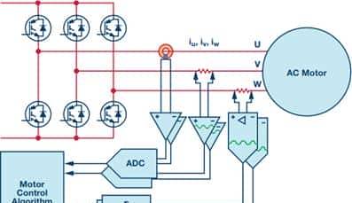 在三相电机驱动中测量隔离相电流时,有多种技术可供选择。图1显示了三种常用方法:一是隔离传感器(如霍尔效应或电流互感器)结合一个放大器;二是电阻分流器结合一个隔离放大器;三是电阻分流器结合一个隔离Σ-Δ ADC。