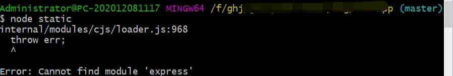 node.js 启动报错:Error: Cannot find module ‘express’ 解决方法