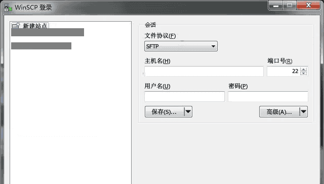 打开 WinSCP,弹出 WinSCP 登录对话框。如下图所示: