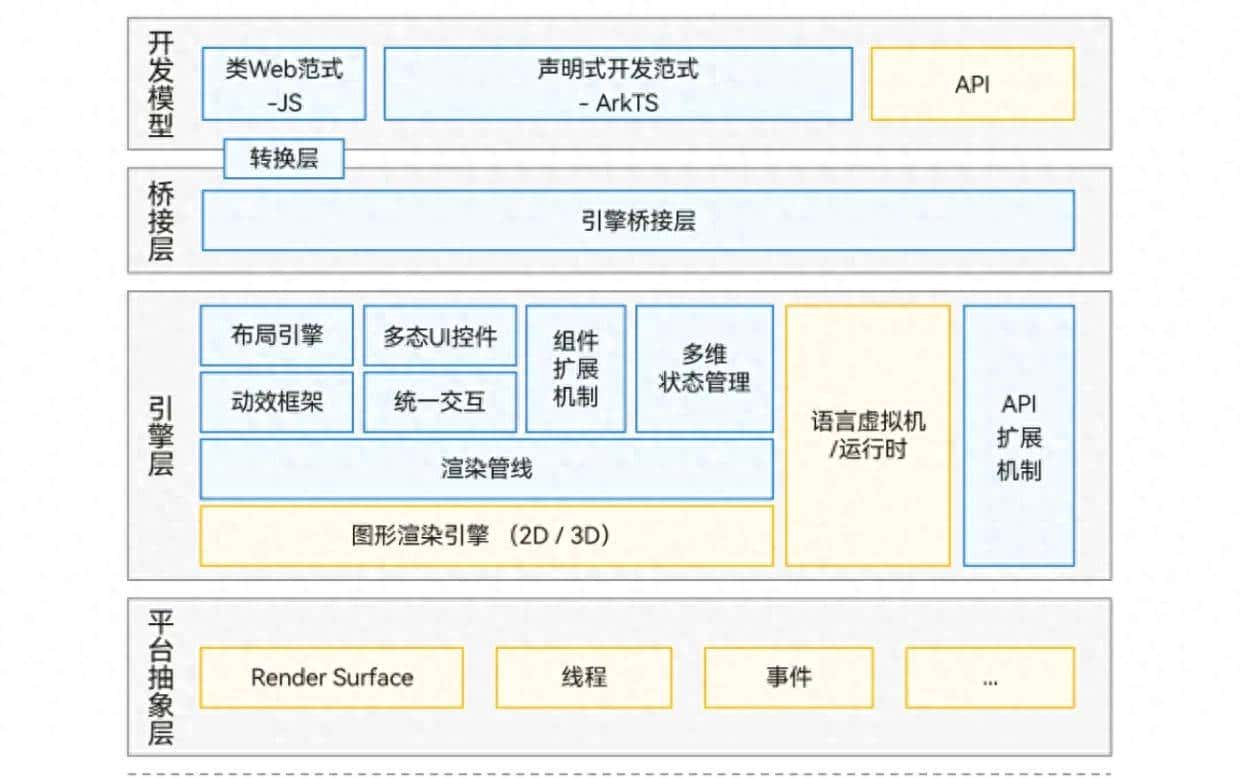 至于华为鸿蒙,ArkUI 是鸿蒙生态原生的 UI 开发框架。ArkUI 框架提供给开发者两种开发方式:基于 ArkTS 的声明式开发范式和基于 JS 扩展的类 Web 开发范式。声明式开发范式更加简洁高效,类 Web 开发范式对 Web 及前端开发者更友善。